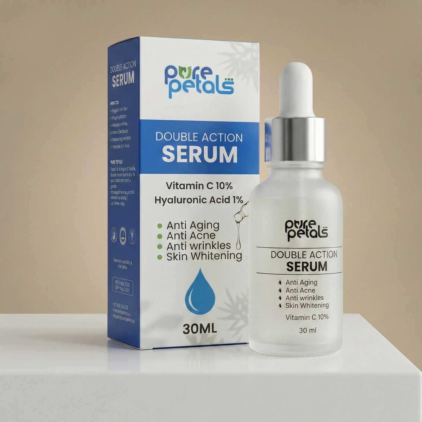 Experience the power of two serums in one bottle! Pure Petals Double Action Serum is a high-performance skincare essential that combines deep hydration with intense brightening. Formulated with skin-loving actives and natural extracts, it targets dullness, dryness, and uneven skin tone—leaving your skin visibly radiant, smooth, and refreshed.